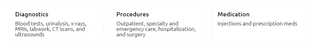 - Core coverage: ER visits, diagnostics (X-ray, ultrasound, CT/MRI), surgery, hospitalization, cancer care.